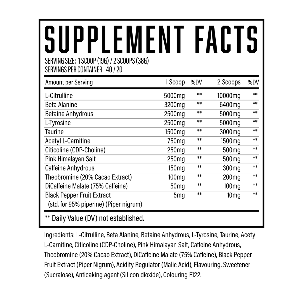 Each sample contains the exact same high-powered blend found in the full-size tub, built with 12 clinically dosed ingredients to support intense training sessions. From massive pump support with 10,000mg of L-Citrulline, to endurance and performance enhancement from 6,400mg of Beta-Alanine, plus focus-driven compounds like L-Tyrosine and Citicoline, Wrecked is designed to fire on all cylinders.